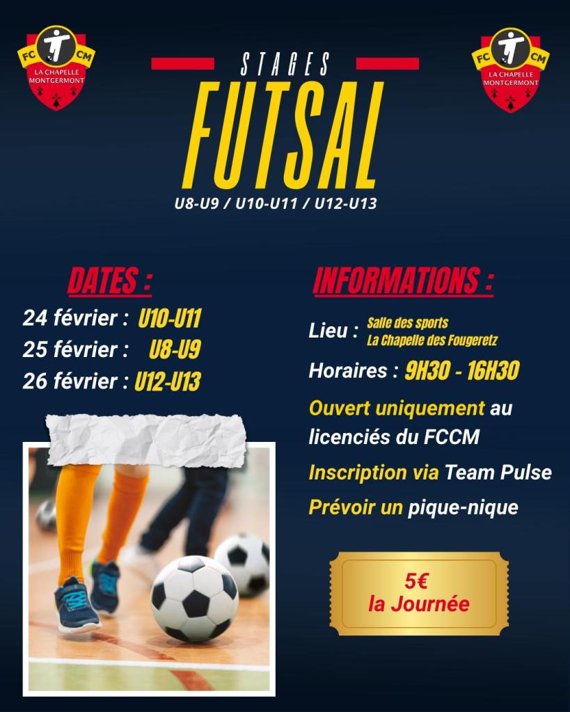 Le FCCM invite ses licenciés de u8 à u13 à participer à une journée de stage de Futsal pendant les vacances de février. 🔥